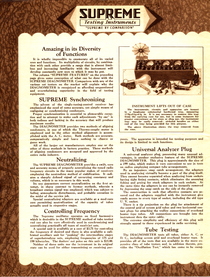 Home Page Supreme History Tube Testers Radio Diagnometers Multimeters