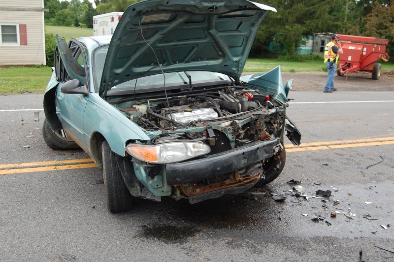 Here is what is left of David's Ford as he was stopped in front of the house waiting to make a left turn into our driveway.